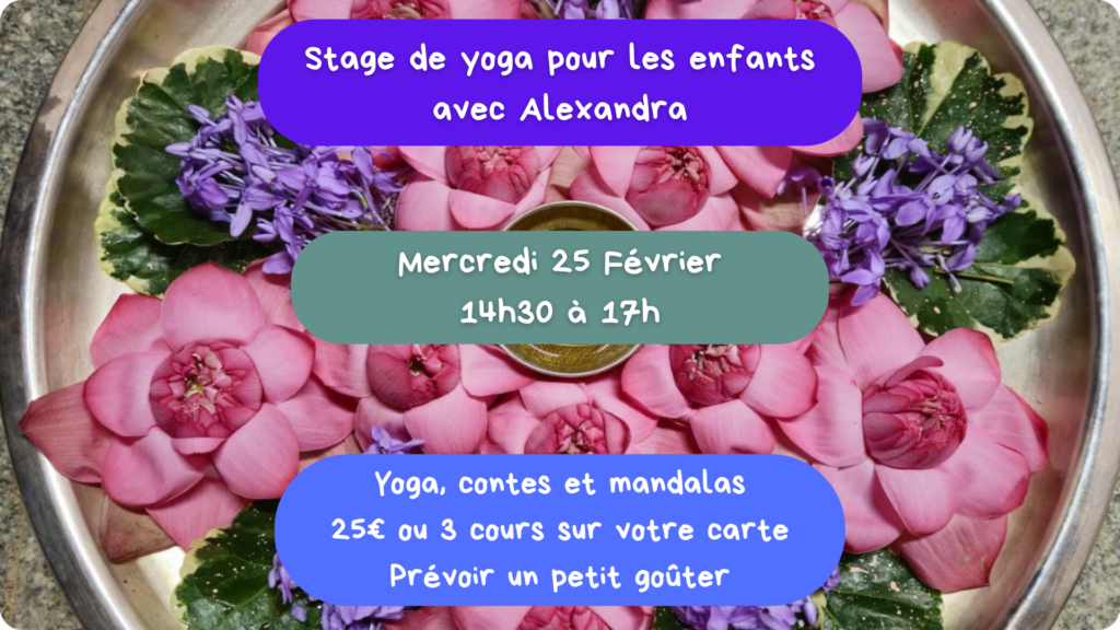 *Yoga enfants, début des cours mercredi 17 septembre2025, dernier cours vendredi 26 juin 2026. Pas de yoga pour les enfants durant les vacances scolaires.