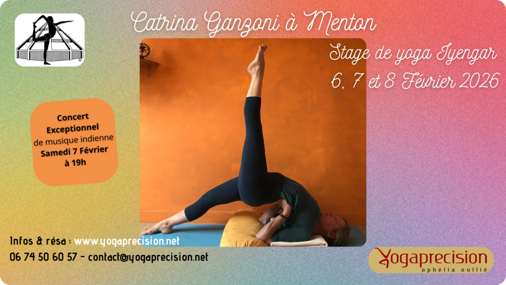 En 2020, elle rencontre Cathy BOYER à Montpellier et découvre le Yoga Iyengar dont elle apprécie la rigueur et la précision et continue auprès d’ Ophélia Oullié à Menton depuis 2023 avec un grand plaisir.